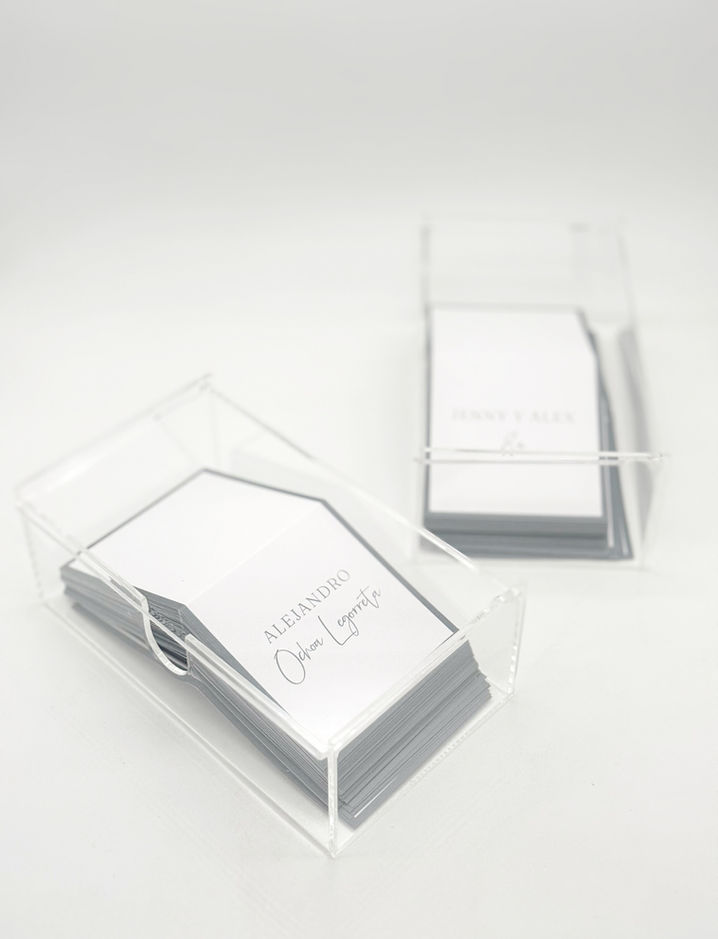 Tenemos cajas de 60 o de 100 tarjetas en papel liso y texturizado.